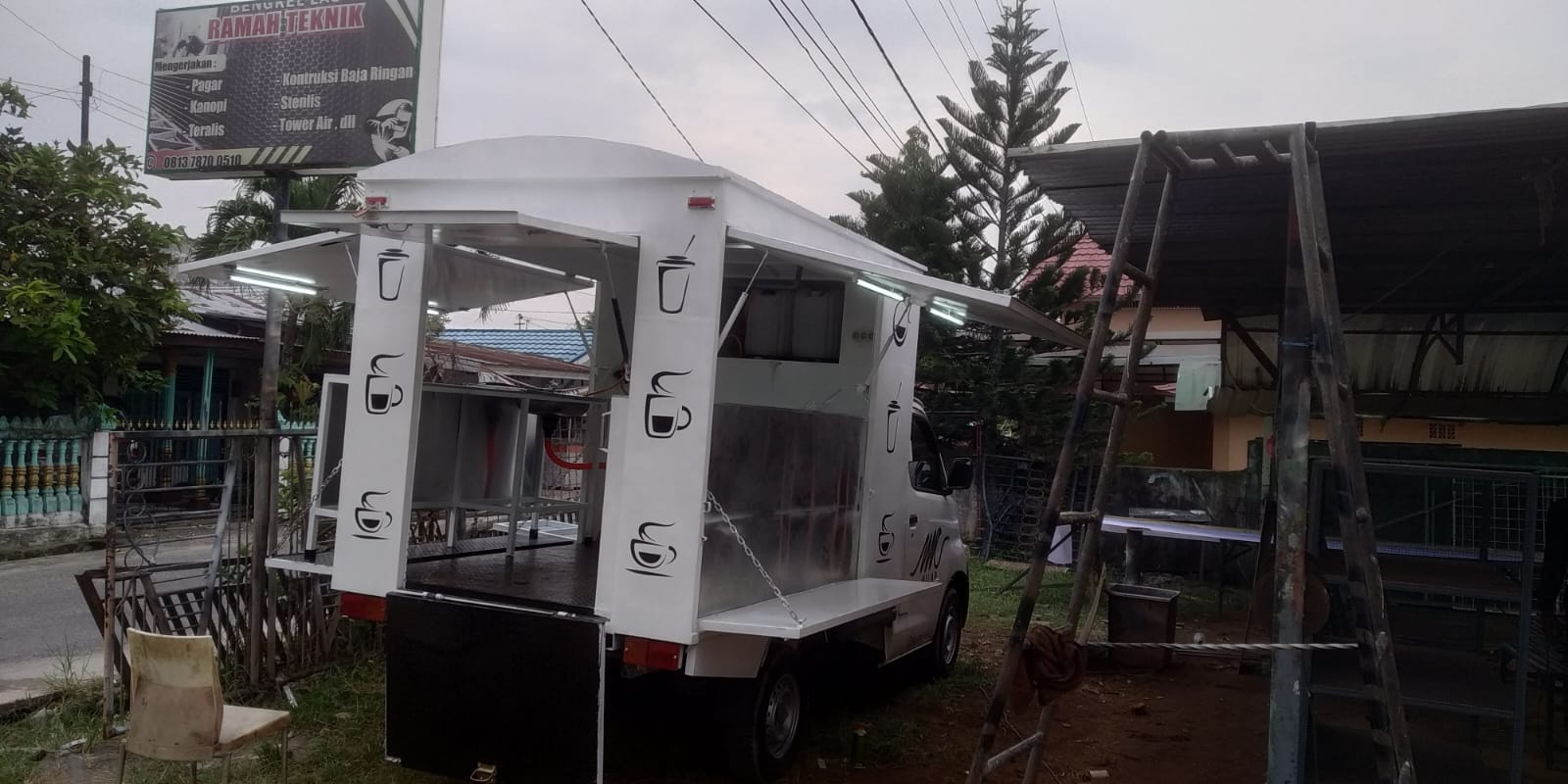 Desain booth atau gerobak jualan kekinian berbahan besi dan plat, cocok untuk berbagai usaha