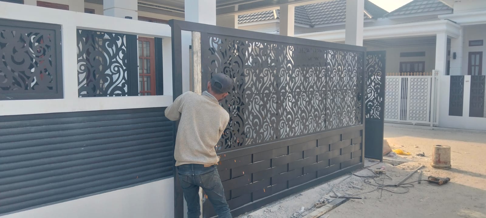 Desain pagar plat laser cutting dengan motif eksklusif dan elegan, cocok untuk berbagai rumah