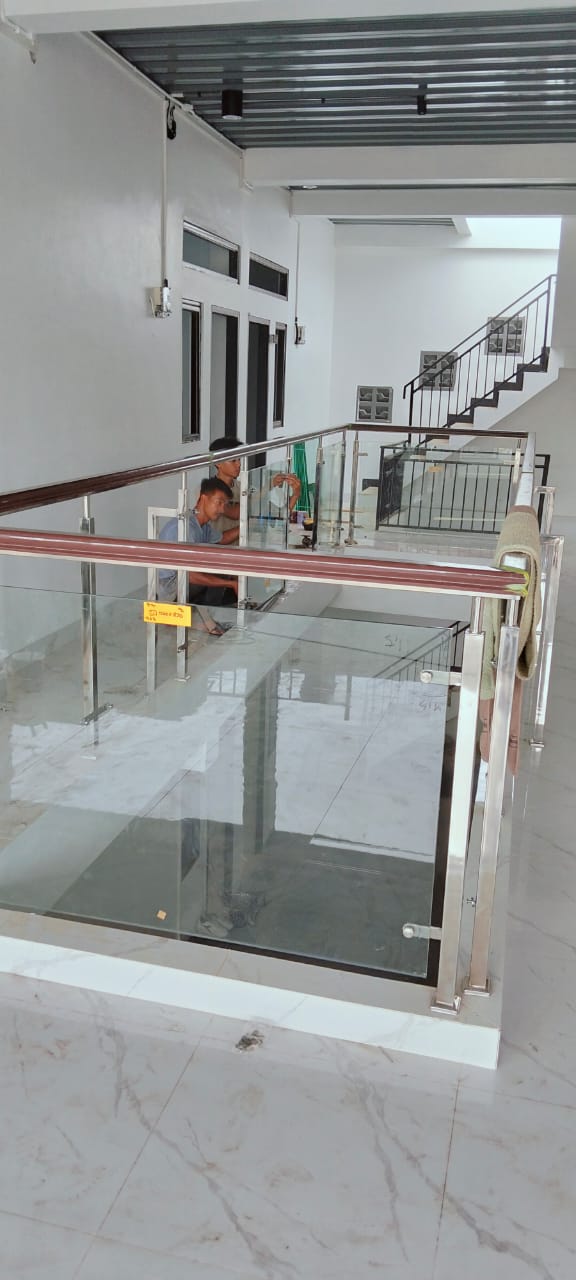 Railing balkon dan tangga stainless berpadu kaca tempered untuk tampilan modern & aman